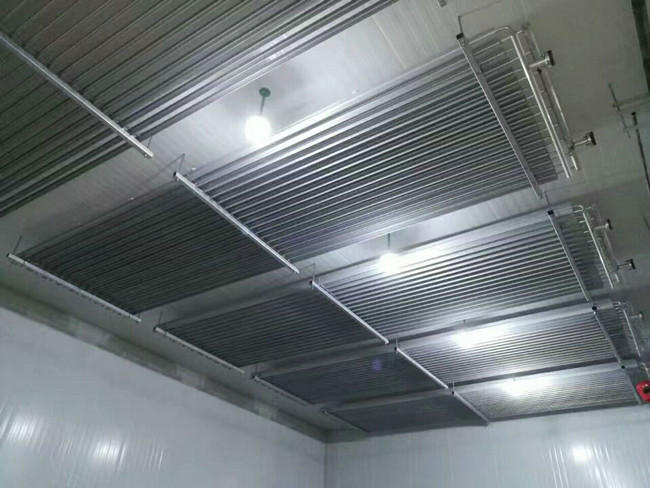 鋁排管具有換熱系數(shù)高、重量輕、不生銹、使用壽命長、安裝方便等諸多優(yōu)點。根據(jù)熱力學(xué)冷庫蒸發(fā)器的換熱面積等于換熱量除以換熱系數(shù),那么冷庫采用鋁排管作為蒸發(fā)器的話,那么冷庫的蒸發(fā)器的換熱面積就要小5倍這樣一來不僅節(jié)省了冷庫蒸發(fā)的采購成本而且也大大的減少了冷庫蒸發(fā)器的吊裝與承重工作量。由于鋁排管換熱系數(shù)的減小也使冷庫蒸發(fā)器的總?cè)莘e減小,從而減少冷庫工程的制冷劑的沖注量也減少了,從而大大的減少了冷庫的一次投資。